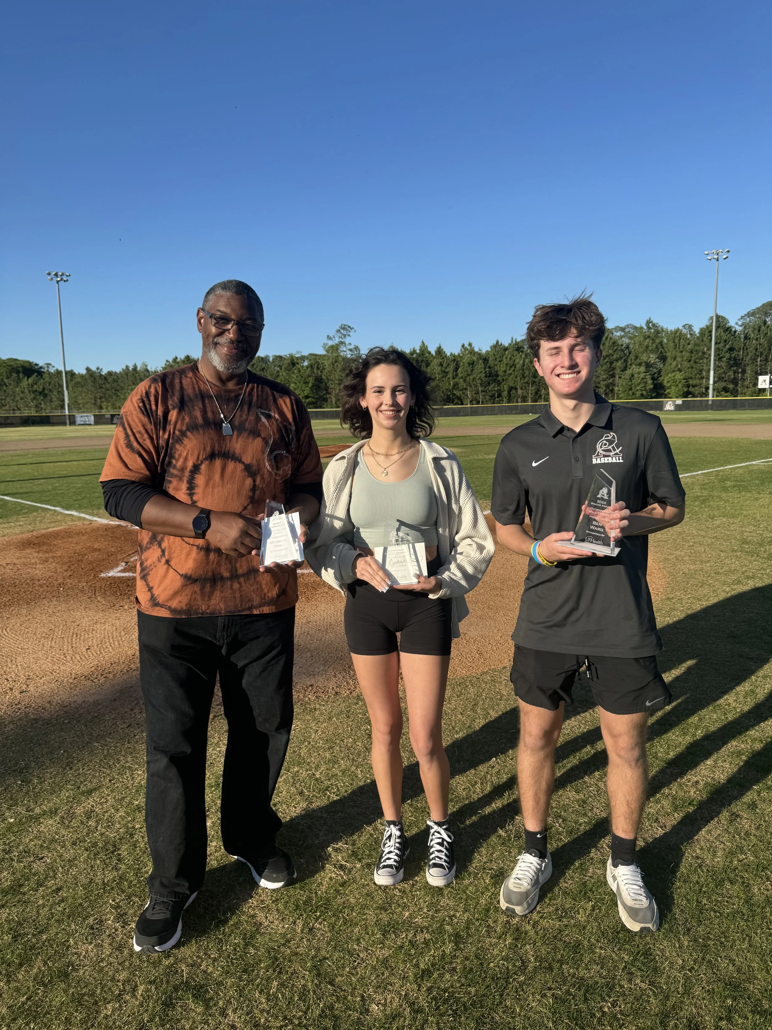 Outstanding Female Student-Athlete, Outstanding Male Student-Athlete, and Outstanding Coach for the Winter Season Sports were presented during the Flecther vs. Atlantic Coast Varsity Baseball game.